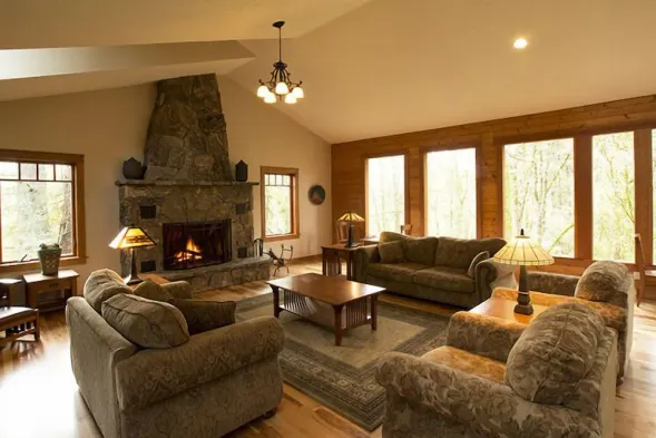 Mountain Style Lodge with stunning view of woods and creek, close to downtown.