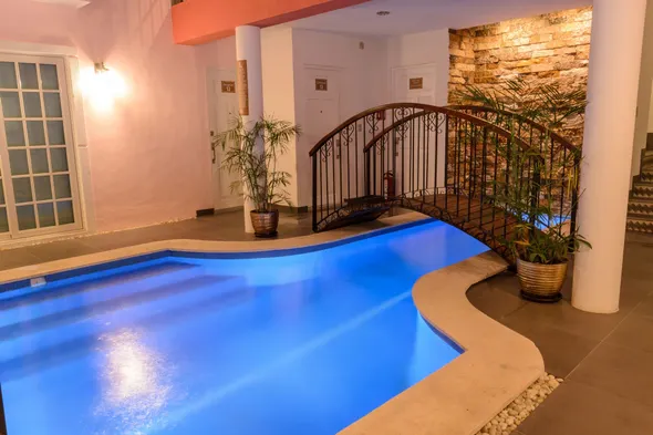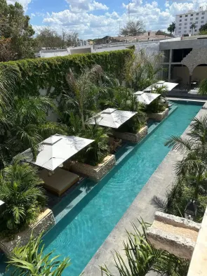 Luxury hotel with swimming pool, gourmet dining, and spa services in the heart of Mérida, steps from cultural attractions.