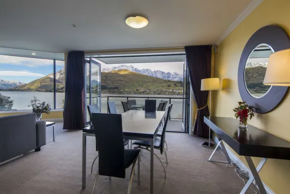 Luxury hotel on the waterfront with indoor pool, fitness center, and dining options near Lake Wakatipu.