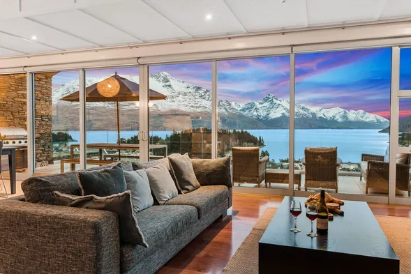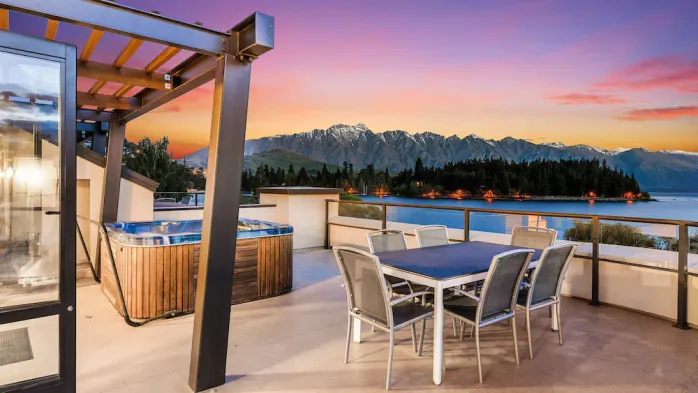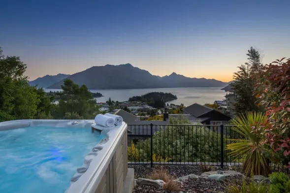 Luxury hotel with spa, indoor pool, and stunning waterfront views near Lake Wakatipu.