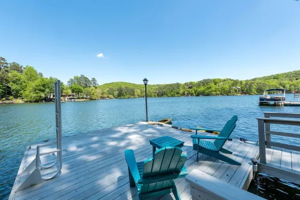 Lakefront 5 BR home nestled on a private cove 1 hr from downtown Atlanta, Ga.