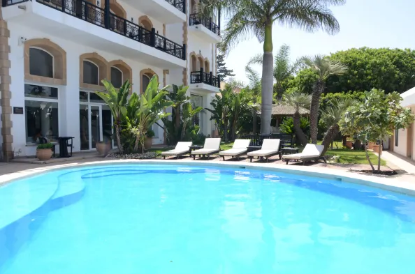 Art Deco hotel with outdoor pool and terrace, located near Essaouira Beach and Bab Marrakech Tower.