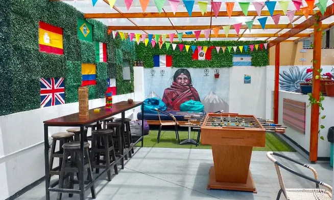 Art Deco hostel with rooftop terrace, arcade/game room, and complimentary breakfast near Lima's Plaza Norte Peru.