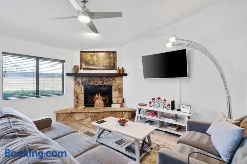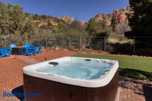 Experience stunning red rock views from this spacious 2-bedroom vacation home with a hot tub and access to golf and tennis courts.