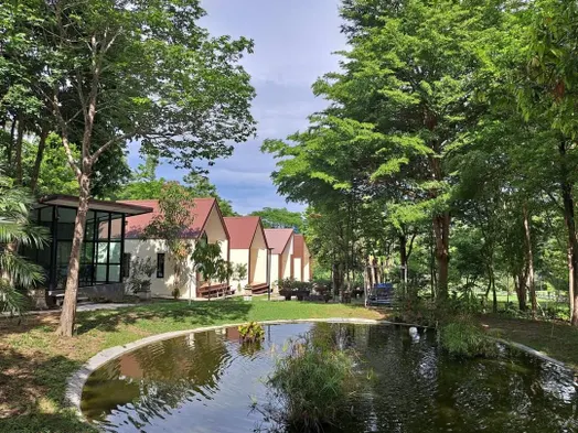 Relax in a resort with outdoor pool, private hot tubs, and international dining in Damnoen Saduak, Thailand.