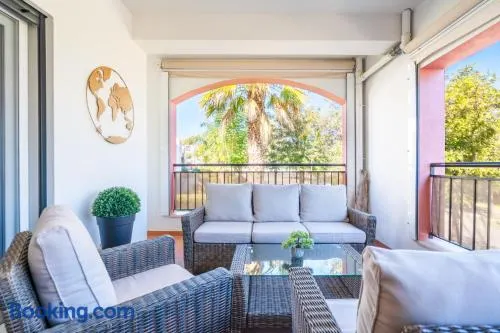 Family-friendly resort with outdoor pool, tennis courts, and dining options near Ria Formosa Natural Park and Cabanas Beach.