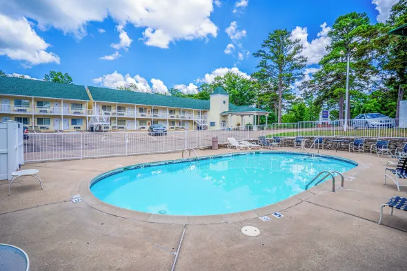 Motel with seasonal outdoor pool, free Wi-Fi, and picnic area in Eureka Springs, Arkansas.