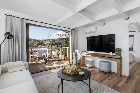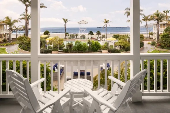 Beachfront hotel with outdoor pool, hot tub, and bicycle rentals near Central Coast Aquarium and Bob Jones City to Sea Bike Trail.