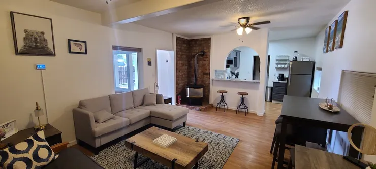 Cheerful 2 bedroom home with indoor fireplace.