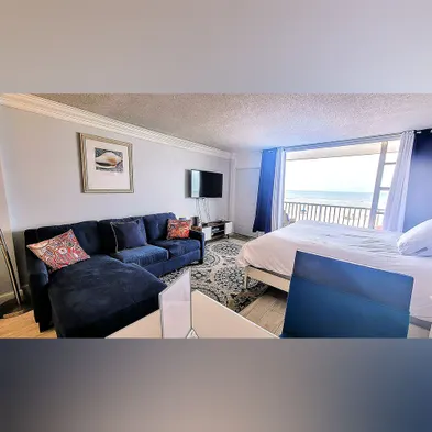Enjoy stunning ocean views and relax by the outdoor pool at this beachfront hotel in Daytona Beach.