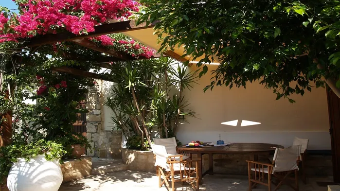 Stone studio in a traditional Cretan setting with a fireplace, garden, and just 10 minutes from the beach.
