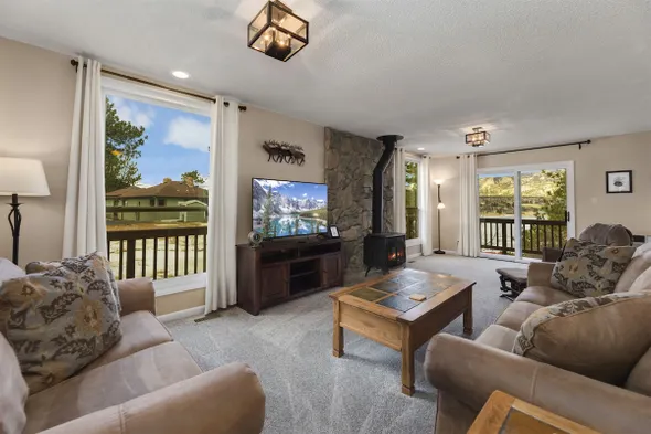 Luxury townhome with king-sized beds in every bedroom, private deck, and stunning mountain views near Rocky Mountain National Park.