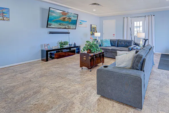 Welcoming beach house with river in the backyard.