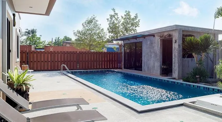 Aparthotel with outdoor pool, sauna, and fitness center in the heart of Si Racha, near Pacific Park and Robinson Sriracha.