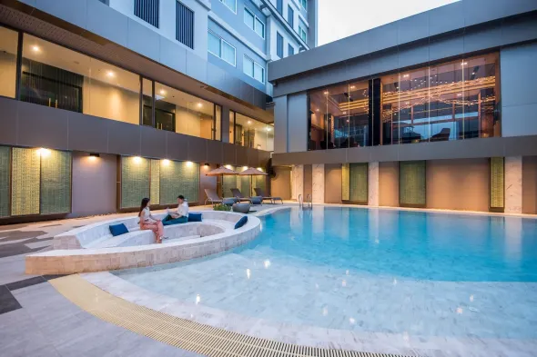 Luxury aparthotel with outdoor pool, spa services, and family-friendly amenities in Si Racha.