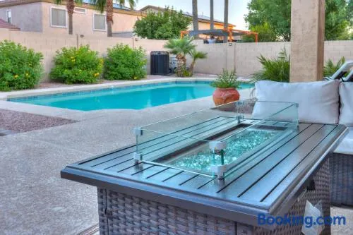 Modern vacation home with outdoor pool, hot tub, and barbecue facilities in Casa Grande.
