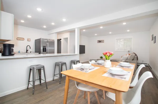 Newly remodeled apartment with a fully equipped kitchen and access to outdoor activities like bird watching and kayaking.
