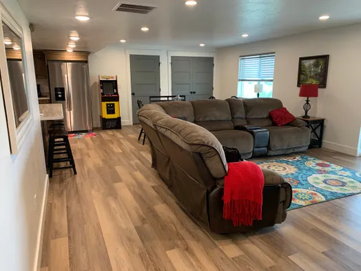 Upscale bed & breakfast with game room, kitchen, and large family space for groups up to 16 in Brigham City.