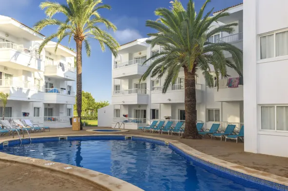 Family-friendly aparthotel with 2 outdoor swimming pools and dining options near Alcúdia Beach.