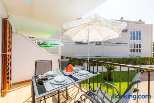 Spacious apartment with garden, free parking, and outdoor furniture in Puerto de Alcudia.