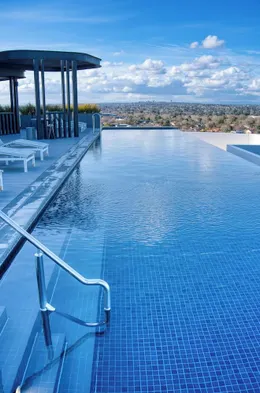 Luxury hotel with outdoor pool, rooftop terrace, and on-site restaurant in Box Hill, Melbourne.