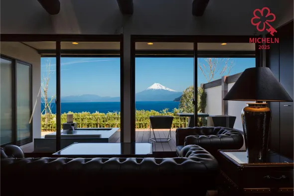 天然温泉-富士山パノラマビュー-プライベートデッキで非日常体験を-伊豆の温泉付き貸別荘-中伊豆noie
