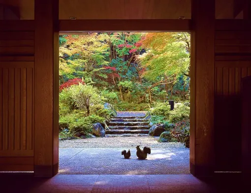 Relax in a luxurious ryokan with hot springs, spa services, and stunning garden views in Izu's national park.
