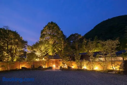 Experience a relaxing stay at this ryokan with free parking, karaoke rooms, sauna, and delicious on-site dining options.