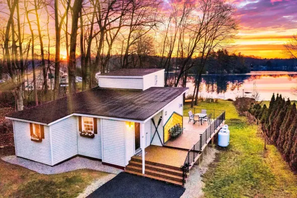 Cozy lakeside cottage with hot tub, kayaks, and a rustic feel, perfect for families or couples seeking tranquility.