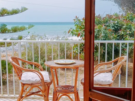 Villa Sara, an air-conditioned veranda overlooking the sea.