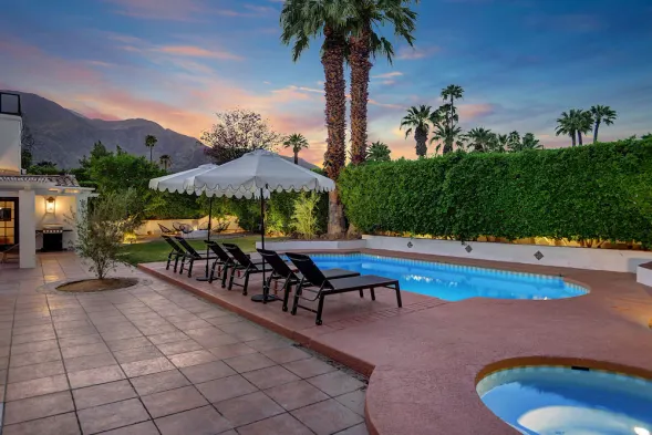 Luxury spa resort with 2 outdoor pools, hot tubs, and a restaurant in the heart of Palm Springs.