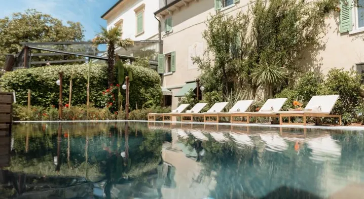Relax in a luxury hotel with a full-service spa, outdoor pool, and gourmet dining near Lake Garda.