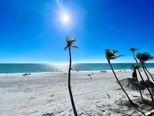 Cozy condo with sliding door access to a large heated pool and steps from the beach in Fort Myers Beach.