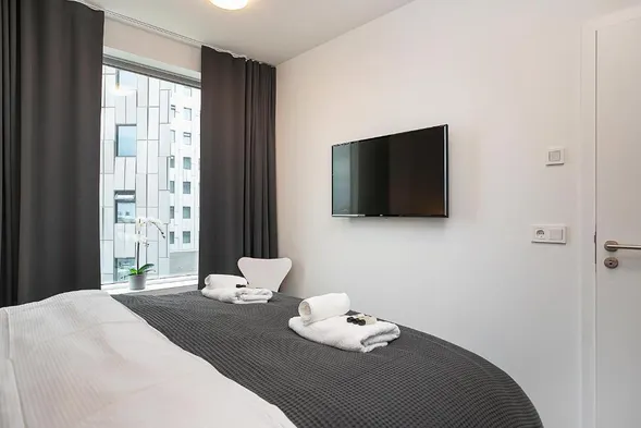 Luxury aparthotel with heated floors, private balconies, and convenient concierge services in central Reykjavik.