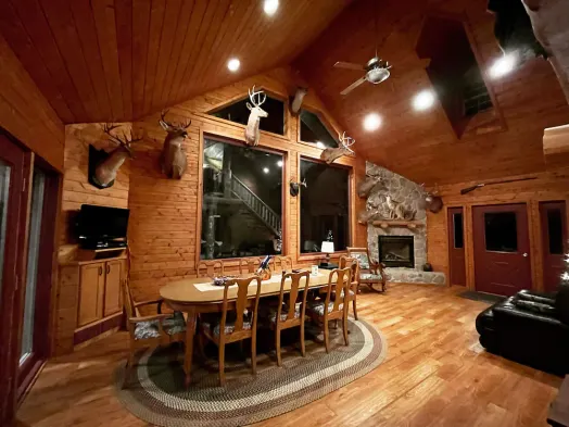 Stunning, secluded lodge nestled in the woods- minutes from town.
