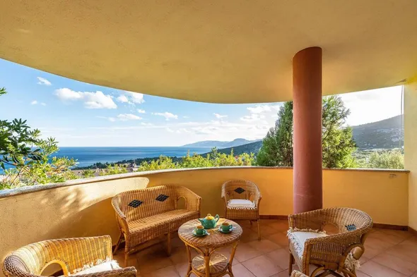 House with a view of the sea and mountains