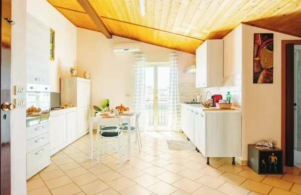 Cozy 95 sqm apartment for 6 people, located on the 4th and top floor of a building with lift (NOT suitable for the disabled). The property is located in Giardini Naxos, a wonderful seaside area near Taormina, a few minutes on foot from the beaches. The a