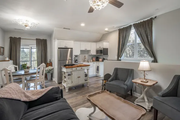 Stylish apartment with a terrace, fireplace, and jetted bathtub, steps from Whiskey Row in Prescott.
