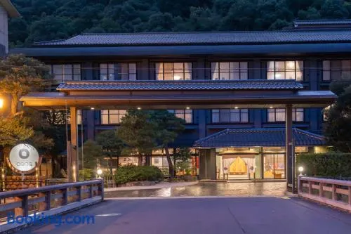 Relax in a ryokan with hot springs, sauna, and Japanese cuisine, just minutes from Tamatsukuri Hot Spring and Historical Park.