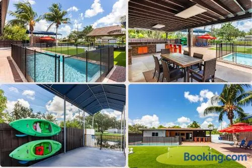Beautiful holiday home with a large outdoor heated pool and barbecue in Miami Gardens, minutes from the beach and Hard Rock Stadium.