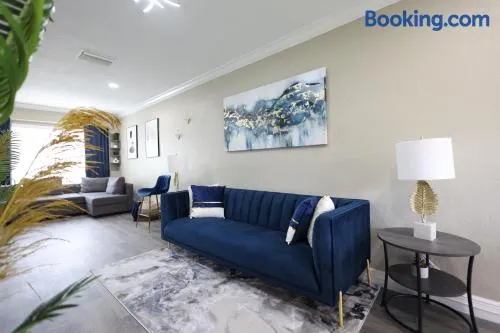 Beautiful holiday home with a large outdoor heated pool and barbecue in Miami Gardens, minutes from the beach and Hard Rock Stadium.