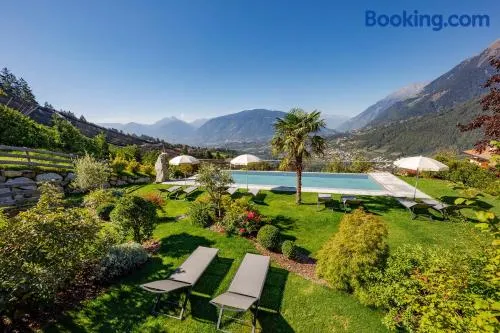Relax in a luxury hotel with 2 outdoor swimming pools, a spa, and stunning mountain views in Schenna.