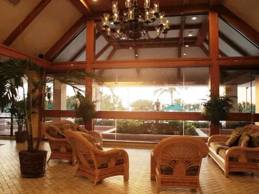 Beachfront condominium resort with 3 outdoor pools, hot tubs, and on-site dining options in Marco Island.