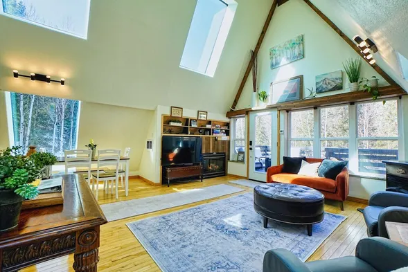 5BR Mountain Cabin !Treehouse Backs to Forest Near Rafting & Skiing