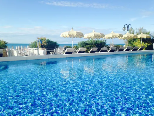 Hotel with outdoor pool and restaurant, featuring free parking and a private beach in Lido di Jesolo.