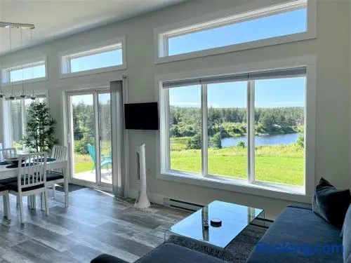 Seafront holiday home with private beach, garden, tennis courts, and stunning mountain views in Ingonish Beach.