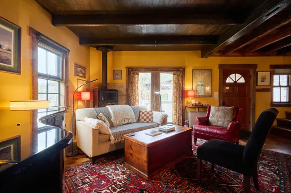 Cozy cabin retreat with wood stove, antique furnishings, and nearby outdoor activities in Stowe Hollow.