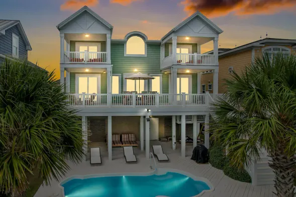 Holden Dreams at Holden Beach, Ocean Front Home with private heated pool and elevator, great views