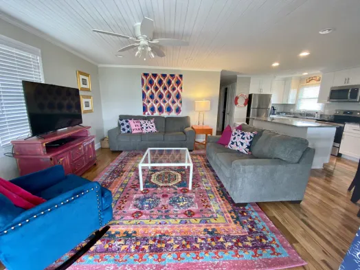 Cozy apartment with a private porch, just a block from the beach and close to outdoor adventures.