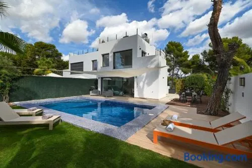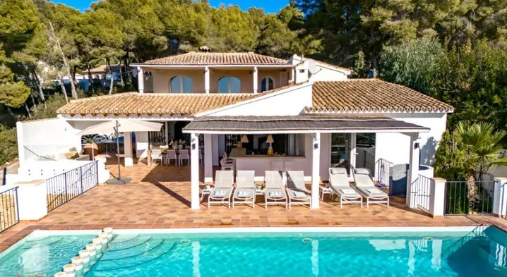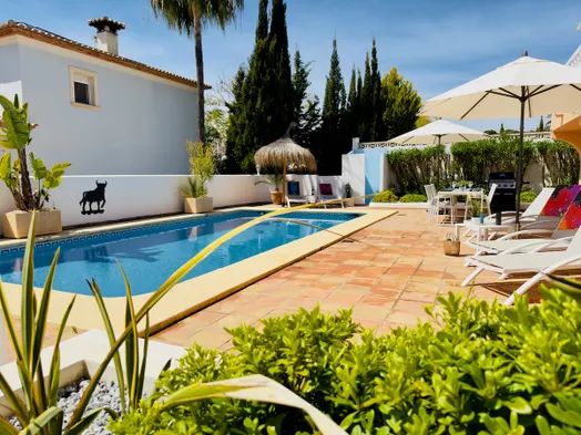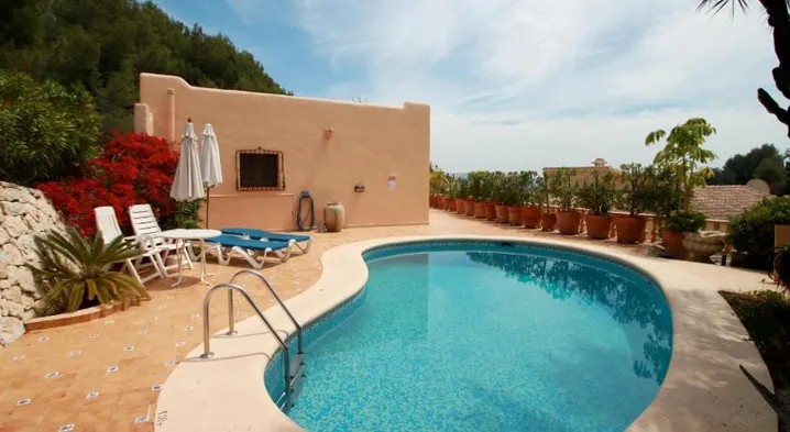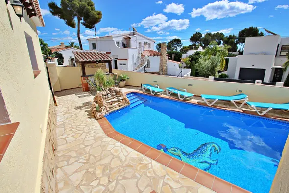 Cozy villa with private outdoor heated pool, terrace, and garden, just 0.7 km from Baladrar Cove in Benissa.